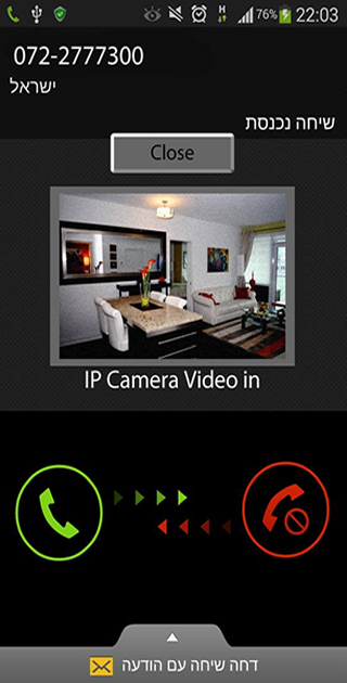 בזמן שהמערכת מתקשרת מופיעה וידאו חי מהמצלמה עוד לפני שאתם עונים לשיחה