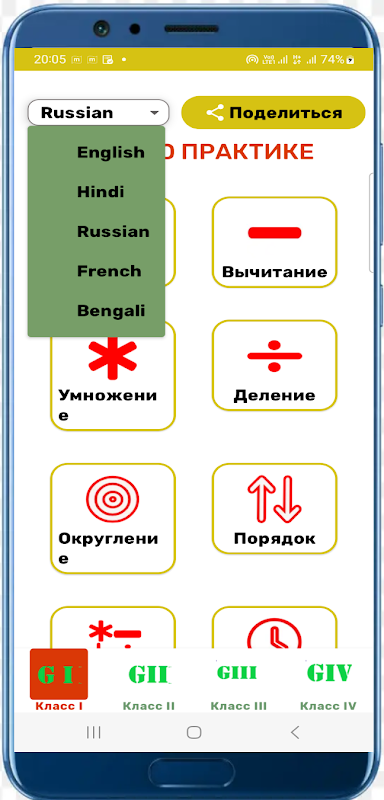 Приложение поддерживает несколько языков, включая английский, французский, хинди, русский и бенгали, что делает его доступным для более широкой аудитории по всему миру.