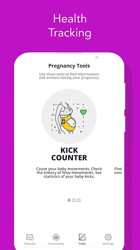 • КОМПЛЕКСНЫЙ ТРЕКЕР: Отслеживайте свое здоровье (симптомы, настроение, сон, активность, вес, кровяное давление и питание), встречи, вехи беременности и фотографии животика в своем календаре. Сплоченное приложение детского центра. Все в одном приложении для отслеживания роста ребенка и отслеживания беременности