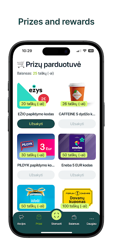 Совершайте покупки, сканируйте и конвертируйте баллы в вознаграждения!
