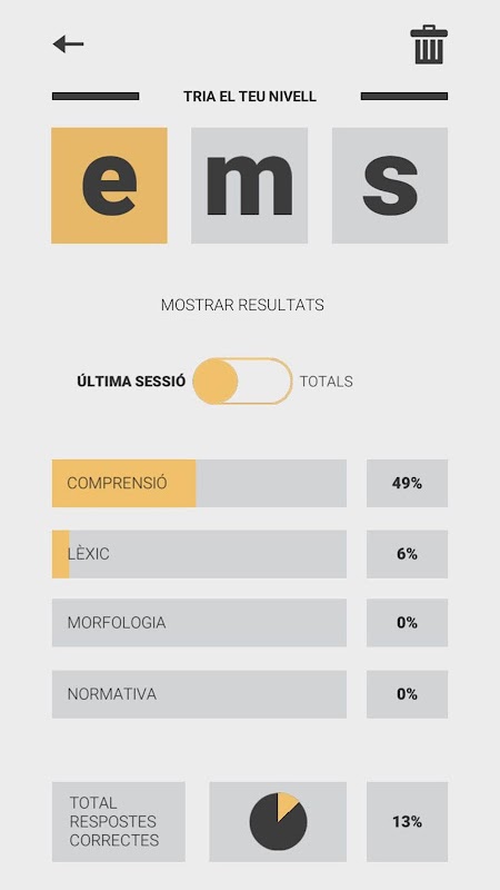 • En l'apartat d'estadístiques podràs veure la teua evolució i on has de millorar. Amb un poc d'esforç ho aconseguiràs segur.