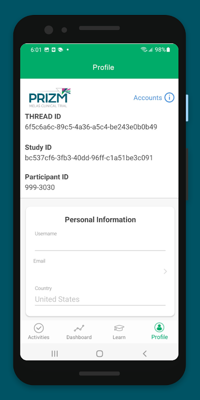 Это приложение для участников исследования PRIZM. Вы будете использовать это приложение дома для заполнения анкет и получения напоминаний и уведомлений. При необходимости это приложение также можно использовать для облегчения телемедицинских звонков.