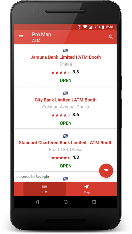 Pro Map is your digital assistant to find out nearest services you need. You can find the phone no. and location including the reaching time and possible multiple direction of nearest, ATM Booth, Airport, Art Gallery, Bank, Bar, Beauty Salon, Book Store, Bus Station, Café, Car Rental, Car Repair, Car Wash, Casino, Church, Clothing Store, Convenience Store, Court House, Dentist, Department Store, Doctor, Electrician, Electronics Store, Embassy, Fire Station, Furniture Store, Furniture Store, Furniture Store, Gym, Hardware Store, Hospital, Hindu Temple, Insurance Agency, Jewelry Store, Laundry, Lawyer, Library, Liquor Store, Local Government Office, Mosque, Movie Theater, Museum, Night Club, Painter, Park, Parking, Pharmacy, Post Office, Police Station, Real Estate Agency, Restaurant, School, Shopping Mall, Spa, Stadium, Store, Subway Station, Super Market, Taxi Stand, Train Station, Travel Agency, Zoo and so on.