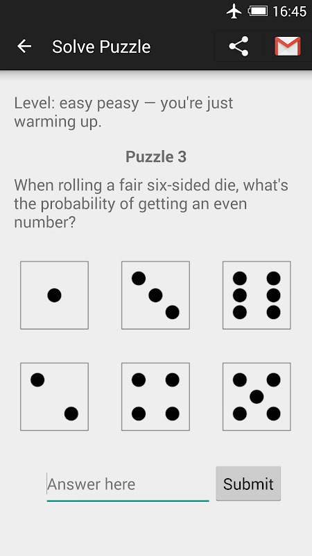 Это приложение предлагает более 90 математических головоломок по вероятности на трех уровнях, от начального до продвинутого. Вводные головоломки просты, но некоторые из головоломок будут очень сложными, даже для людей, которые изучали вероятность на уровне колледжа — попробуйте ответить на них все! Если вы застряли, внизу каждой страницы есть подсказка, и вы можете легко пропустить головоломки (и вернуться к ним позже), проведя пальцем по горизонтали. Развлекайтесь!