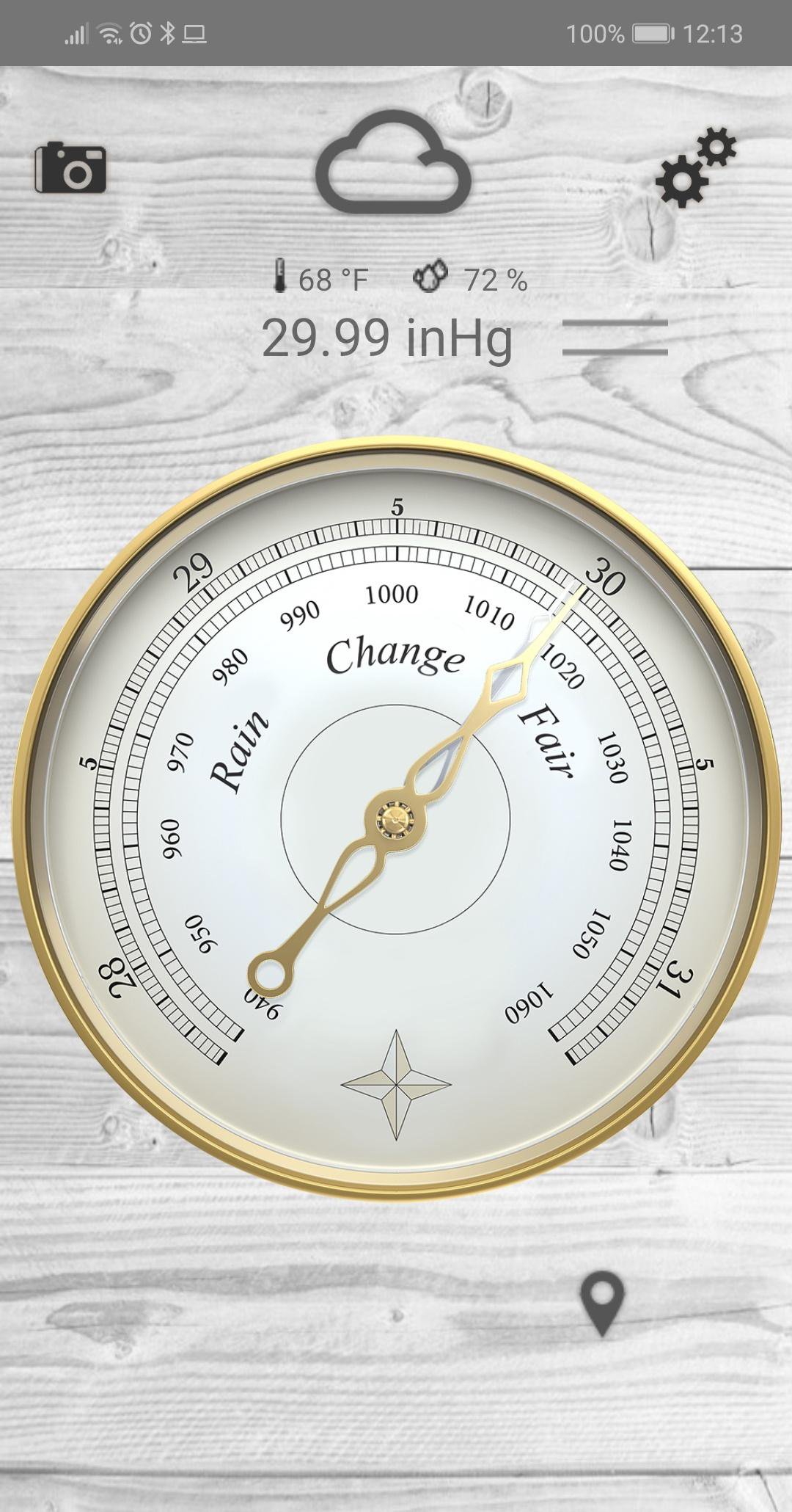 Профессиональный барометр. Вы можете просматривать в режиме реального времени ход атмосферного давления, а затем обеспечивая изменение времени погоды. абсолютная точность за счет параллельной работы различных датчиков, таких как датчик давления с устройством, датчиком GPS и дистанционного времени подключения к близлежащих метеостанций к вам.
