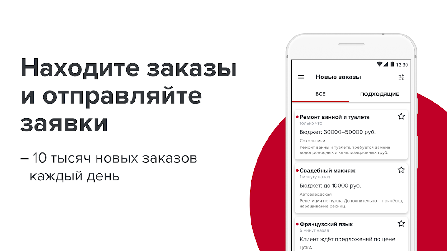Приложение «PROFI.RU для специалистов» помогает находить заказы опытным специалистам и тем, кому нужна разовая работа и подработка. База специалистов PROFI.RU насчитывает 900 000 человек.