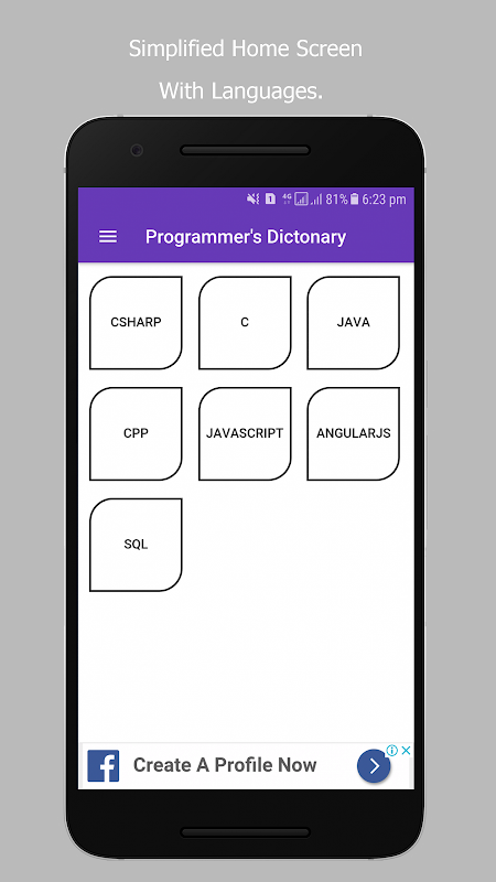 Programmer's Dictionary 2.0 Is Successor of Programmer's Dictionary with improved UI . There are single language based applications available but a programmer needs to use multiple languages hence there was a need for a simple and effective all in one app.