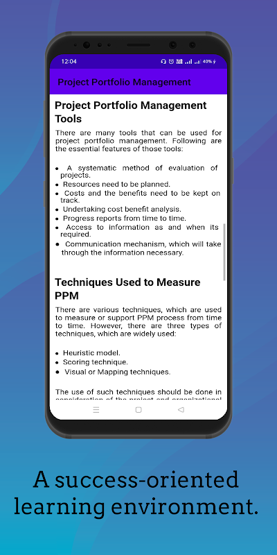 If you are an aspiring project manager or project leader, then definitely this app is for you which will take you through almost all the important management concepts one by one using a simply easy learning approach.