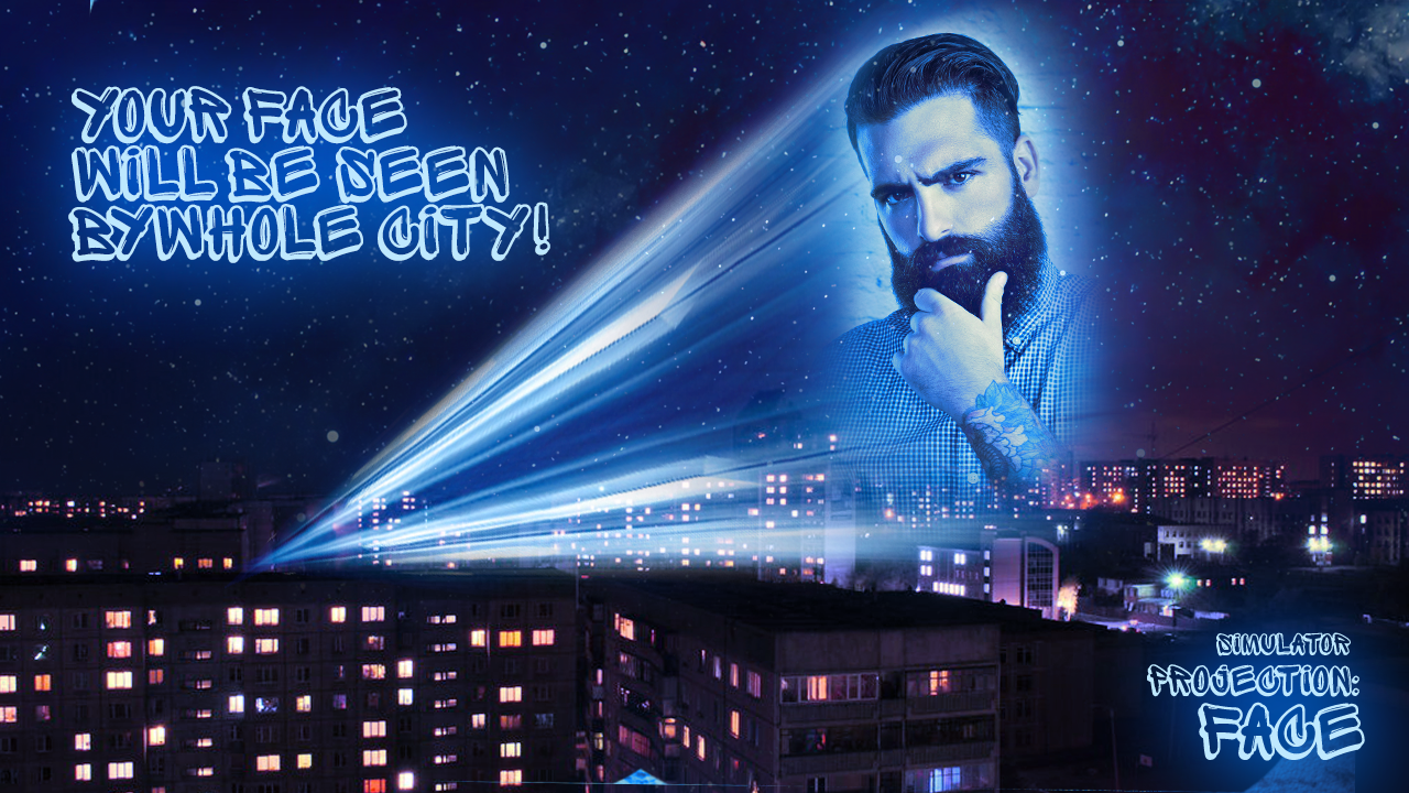ВНИМАНИЕ! Телефон не является реальным проектором изображений и 3D голограмм! Проектор лица лишь симулирует работу настоящего HD проектора, показывая фотографию на экране телефона. Камера телефона и вспышка лишь имитируют работу проектора для более реалистичного образа! Разыграй друзей, показав им симулятор, и сказав, что можете проецировать фотографию своего лица в небо!