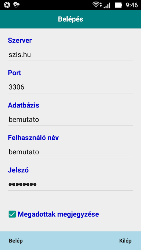 A bemutató adatbázis csak a kipróbálást szolgálja, közös adatbázis (minden felhasználó által rögzített adat megtalálható benne), az adatai naponta törlésre kerülnek.