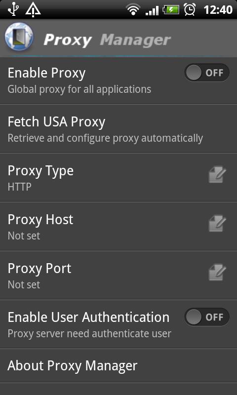 Доступ к неограниченной сети с прокси на Android телефонов. Proxy Manager является простой, но мощный инструмент, чтобы установить прокси на телефоны и сети доступа с ним. И это без рекламы.