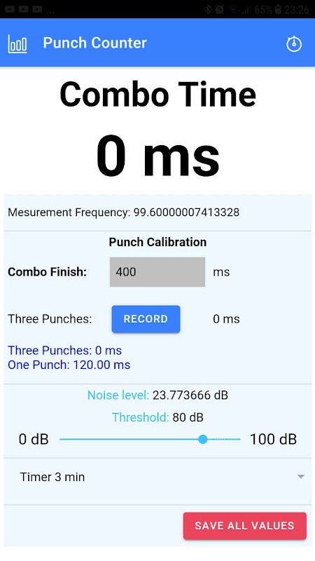 Приложение распознает звук ваших ударов и вычисляет разницу во времени между ударами.