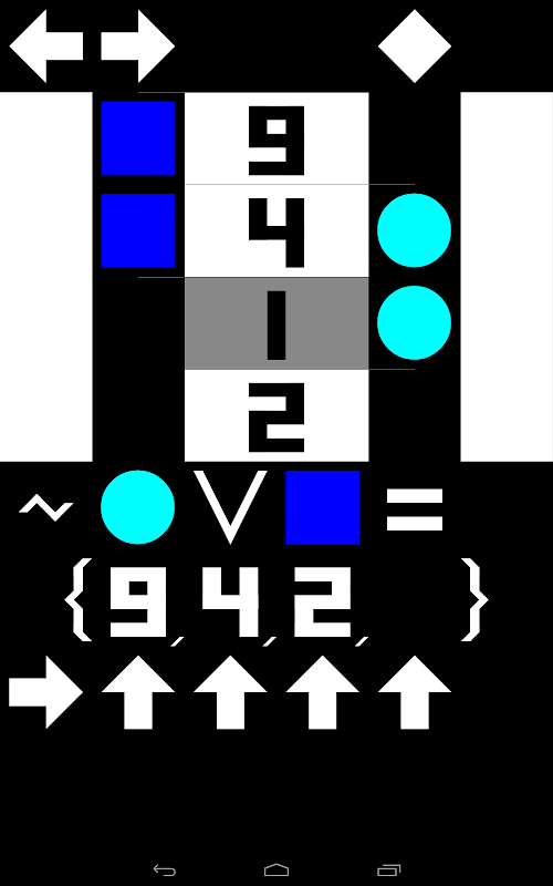 Pure Sets is a app for determining sets of single digit numbers. Level one is for numbers between 1 and 4 in fixed positions. Level two is for numbers between 1 and 4 in random positions. Level three is for numbers between 1 and 9 in random positions. Please "Visit Developer's Website" for directions.