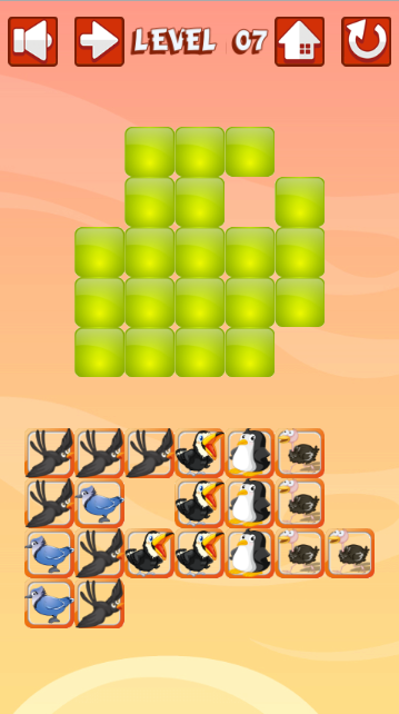 The player must drag, move and drop birds puzzle onto the right spot to completely fill a blocks on the main grid.