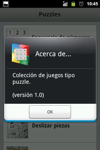Colección de juegos tipo puzzle. Se incluye un puzzle de tipo secuencia de números, y varios de deslizar las piezas para descubrir la imagen oculta.