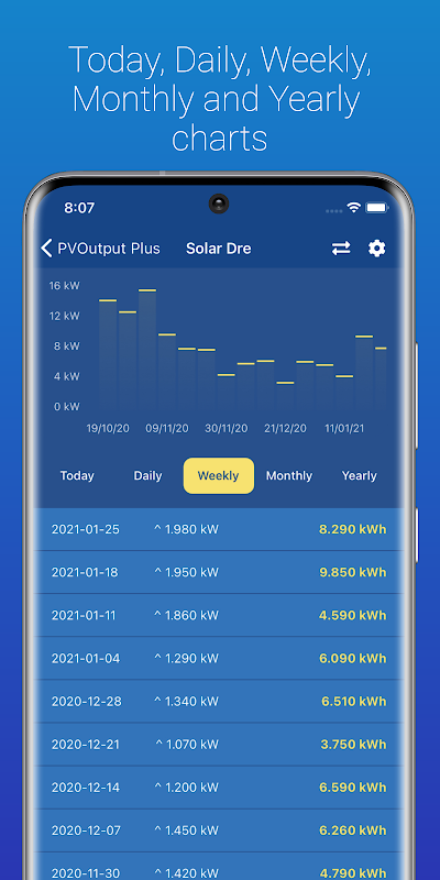 Управляйте своими фотоэлектрическими системами PVOutput.org с помощью этого приложения. Красивые диаграммы и данные.