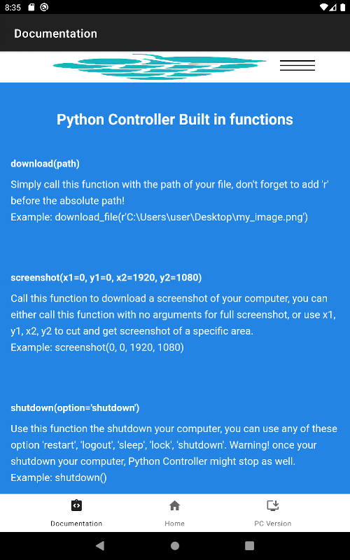 Контроллер Python — это первое приложение, которое позволяет отправлять команды Python со смартфона, планшета или другого компьютера на домашний компьютер.