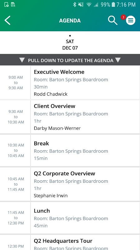 The Q2 X App is the perfect app for your important Executive Briefing Center (EBC) meetings. The app provides a central place for Q2 employees, customers, and meeting attendees to see upcoming Executive Briefing Center visits or meetings, get room names, maps, agenda items, presenter bios, travel and logistics options. The robust notification system can inform attendees of room changes, eContent updates and more. Integrated surveys allow users to easily give feedback directly within the app.