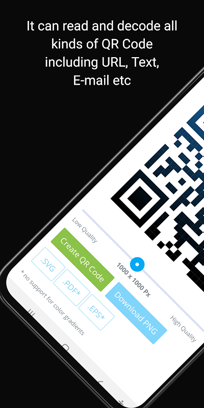 To scan QR code, just place the QR code and Barcode in center of screen. The QR Code Scanner decode all kinds of QR code including URL, Text, E-mail, Phone, SMS, VCard, MeCard, Location, Facebook, Twitter, Youtube, Wi-Fi, Event and etc