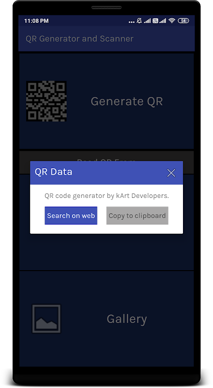 3. Scan any QR code from Gallery and view result in text or see result on web.
