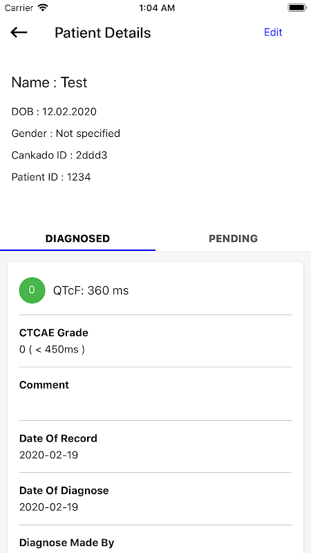 CANKADO поддерживает в различных условиях мобильную отчетность по ЭКГ для выявления синдрома QT при онкологическом лечении. Приложение QTc Tracker является записью для онкологов.