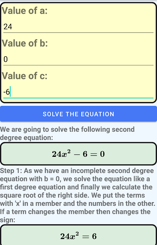 Если b=0, мы решаем неполное уравнение второй степени, как если бы оно было уравнением первой степени, и в конце вычисляем квадратный корень.