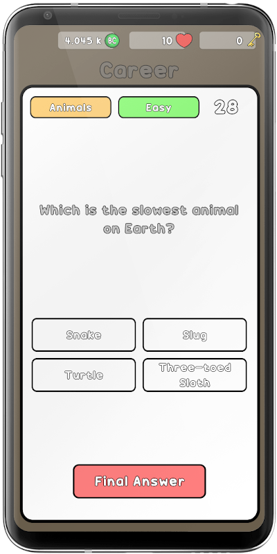 Become a Question Boss and answer more then 1500 questions in Career Mode or play endless Survive mode in Easy, Normal and Hard