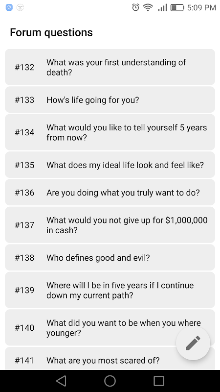 - С дневником вопросов 365: один вопрос саморефлексии: вы также можете присоединиться к форуму вопросов - где люди задают вопросы и обсуждают, ответы на вопросы. Вы также можете задавать вопросы и отвечать на все вопросы. Это интересно!