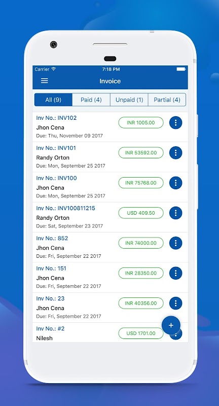Можно сохранить его / ее драгоценное время за счет хранения деталей счета-фактуры клиента в этом лучшее приложение счета, он будет показывать имя клиента в автоматическом предложение для всех ваших будущих счетов-фактур.