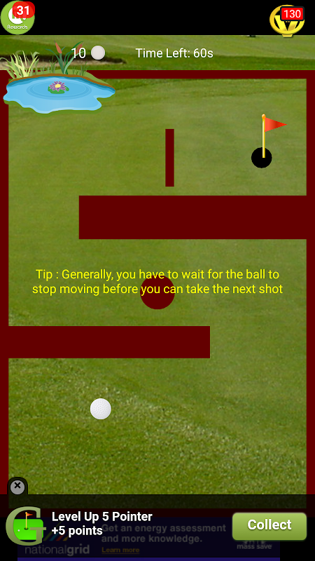 This is an awesome Mini Golf game that is designed to be fun and quick (over in 60 seconds). Oh! and you can earn various gift certificates just by playing this game !