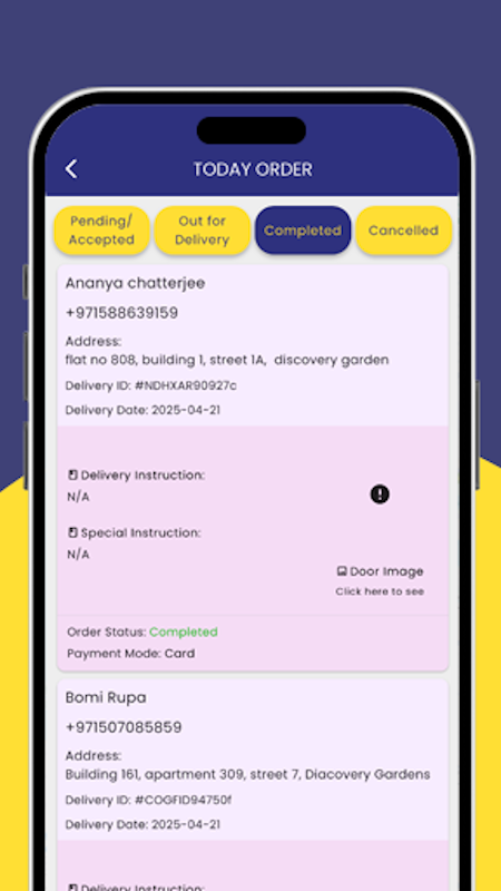 -Доставщик может проверить заказы, назначенные ему в тот же день и на следующий день.