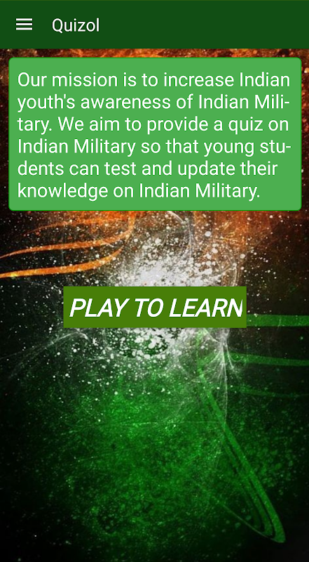 Our mission is to increase Indian youth's awareness of Indian Military. We aim to provide a quiz on Indian Military so that young students can test and update their knowledge on Indian Military