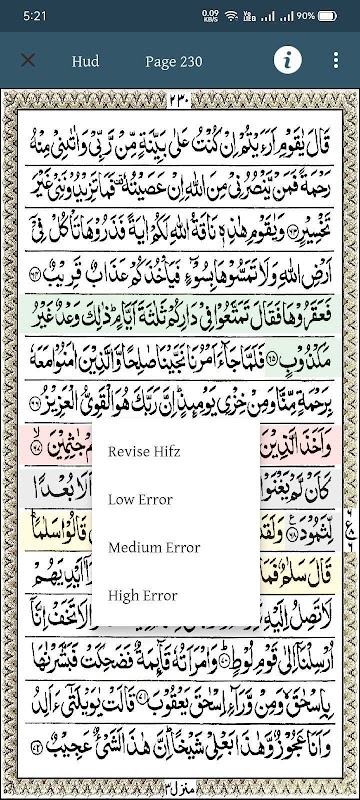 Вы можете легко пересмотреть суру или аят в этом приложении Хафиза и Корана. Если вы допустили какую-либо ошибку во время пересмотра, вы можете легко определить область ошибки этого приложения Hafiz e Quran, область ошибки будет выделена красным цветом этого приложения Hifz Quran. Таким образом, вы можете больше практиковаться в области ошибок.
