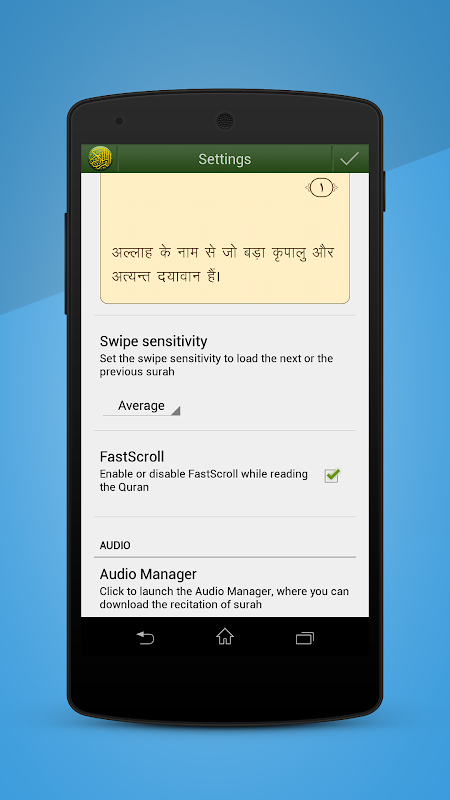 - Аудио менеджер, чтобы легко загружать и удалять декламации.