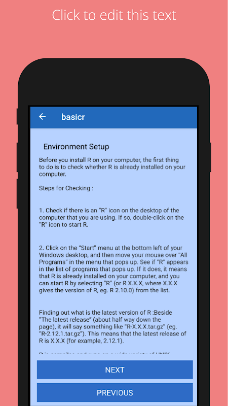 Учебные пособия в приложении разделены на подробные разделы для быстрого и легкого обучения. Никакого предварительного опыта программирования не требуется, даже новичок может легко изучить R.