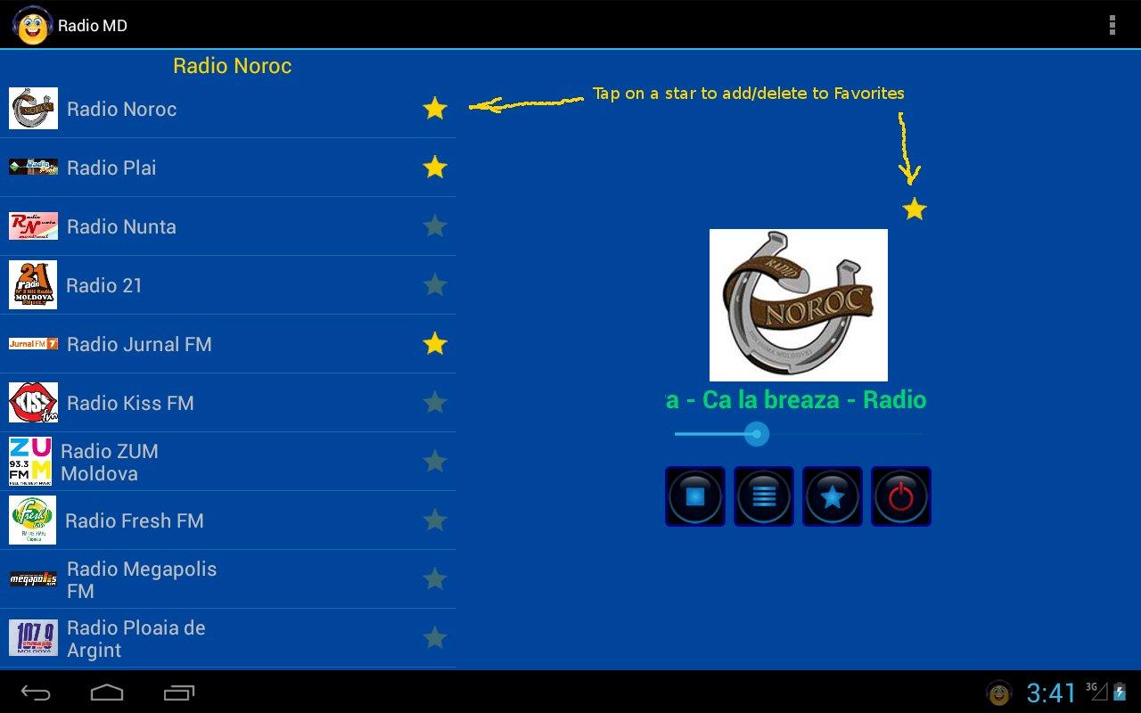 Радио MD это приложение, которое позволяет слушать вживую и по радио станций Streaming Молдовы. Вы можете слушать радио, делая что-то еще с вашего мобильного телефона или планшета. Приложение имеет список избранных, в котором вы можете разместить свои любимые станции. Со всеми типами соединений (WiFi, 3G и т.д.) вы можете оставаться на прослушивания, где бы вы ни находились.