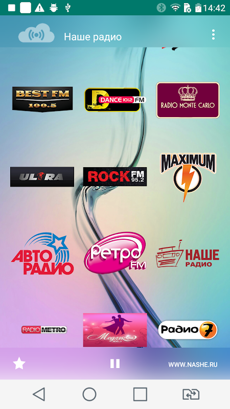 Лучшие радиостанции России, а также радиостанции по категориям. Вид приложения можно настроить под себя, благодаря полупрозрачным элементам интерфейса и возможности выбрать фоновую картинку. Радиостанции можно добавить в Избранное, чтобы поднять их вверх по списку. Также в настройках можно отключить отображение групп, чтобы в списке остались только лучше радиостанции. Если нет нужной радиостанции, то можно добавить свою в группу Мои станции. Можем помочь с добавлением.