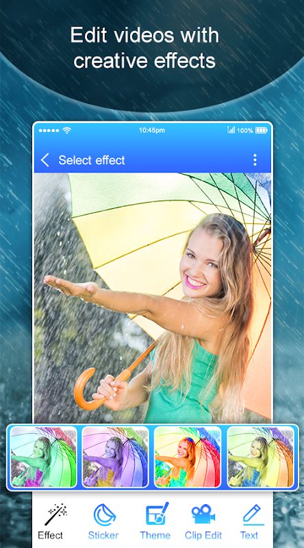 Rainy Photo Video Maker with Music is the easiest way to create, edit and share amazing music videos, slideshows and stories with your photos, video and free licensed music. With several steps, selecting photos, adding filters, text and music, instantly finish your own video.