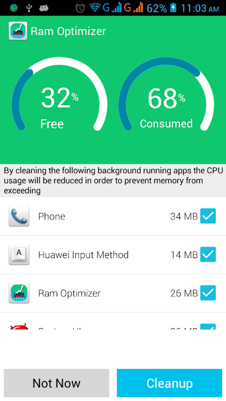 Оперативная память также влияет заряд батареи и проблемы зарядки. Теперь очистить ваш барана в один кран с эффективным процессом.