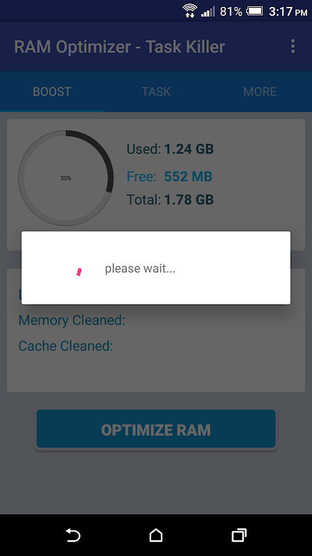 Thank for use RAM Optimizer - Task Killer app. Don't forget give us 5 stars + your feedback.
