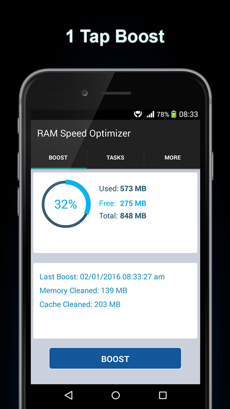Повысьте и оптимизировать андроид устройства с ОЗУ Speed Optimizer.