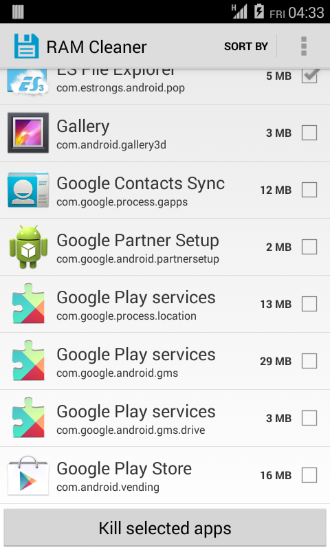 Отображает количество оперативной памяти, используемой, и предлагает ярлыки убить фоновый процессы или запустить пользовательские приложения.