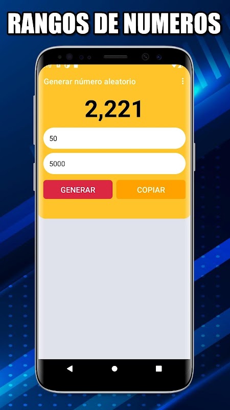 Con esta aplicación podrás generar números aleatorios entre un rango, es decir, ingresas el número mínimo y el número máximo luego haces clic en el botón generar y la aplicación va a generar un numero aleatorio entre ese rango.