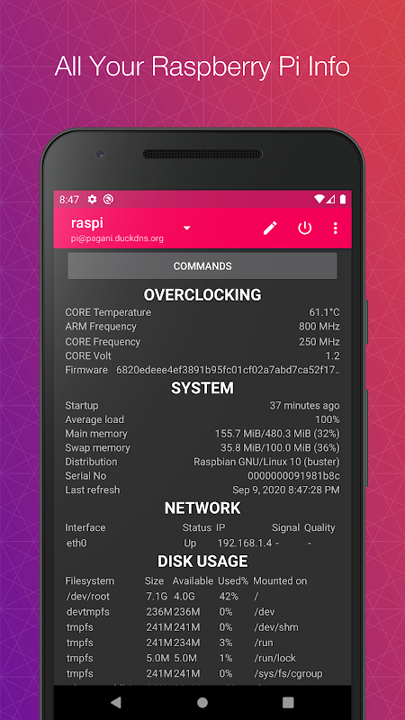 Raspberry Pi Control allows you to easily check your Raspberry Pi remotely