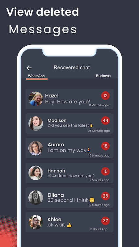👉 Теперь вы можете видеть весь чат здесь, используя это приложение. Просмотр удаленных сообщений и медиафайлов.