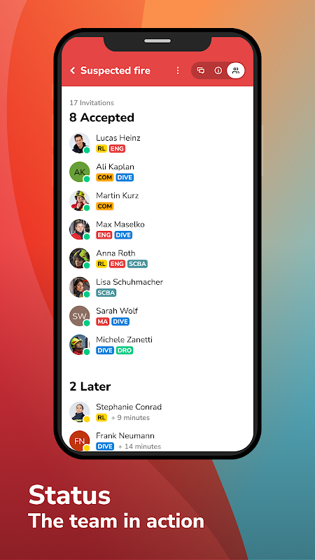 • ОБРАТНАЯ СВЯЗЬ С ТРЕВОГАМИ: Здесь вы можете увидеть, кто и когда развернут, и какой квалификацией обладают отдельные члены команды.