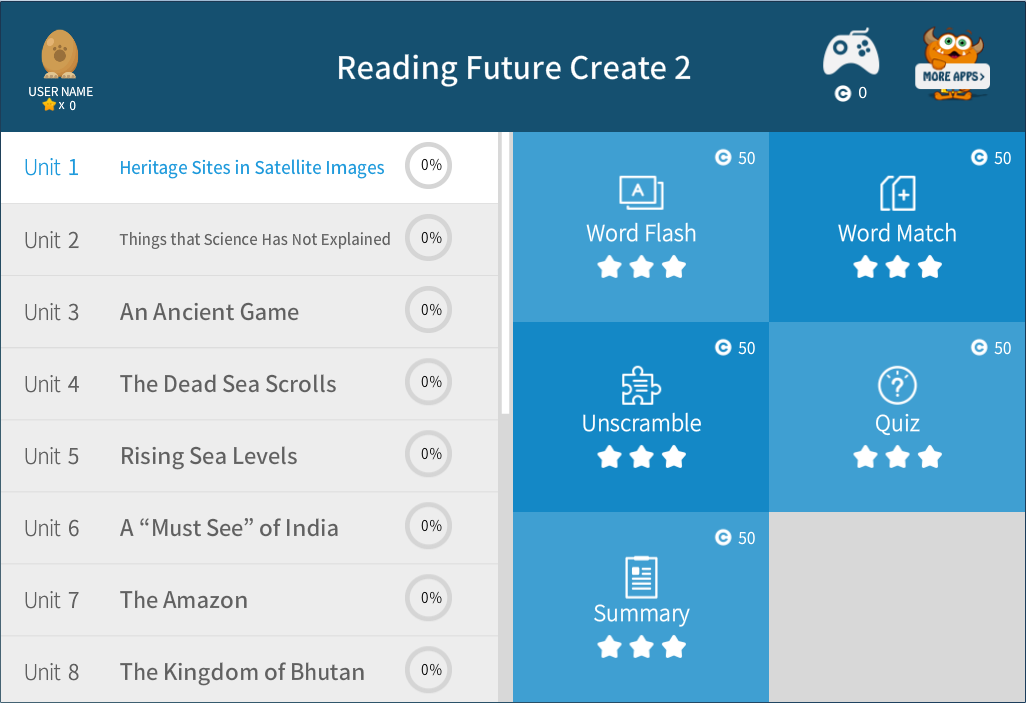 The wide variety of activities have been designed to motivate learners. They can earn points and grow their avatar, while developing their English skills at the same time.
