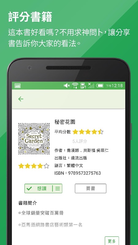 • Отсканируйте штрих-код: с легкостью подключите свой книжный шкаф к сети. Вы также можете отсканировать книгу, когда пойдете в книжный магазин, чтобы увидеть все комментарии к этой книге.