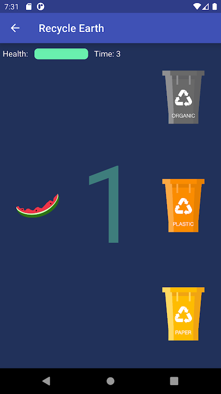 Это приложение представляет собой игру, которая помогает людям больше узнать о переработке.