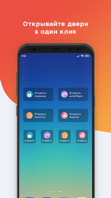 - Открытие подъезда и доступа на придомовую территорию с помощью виджета.